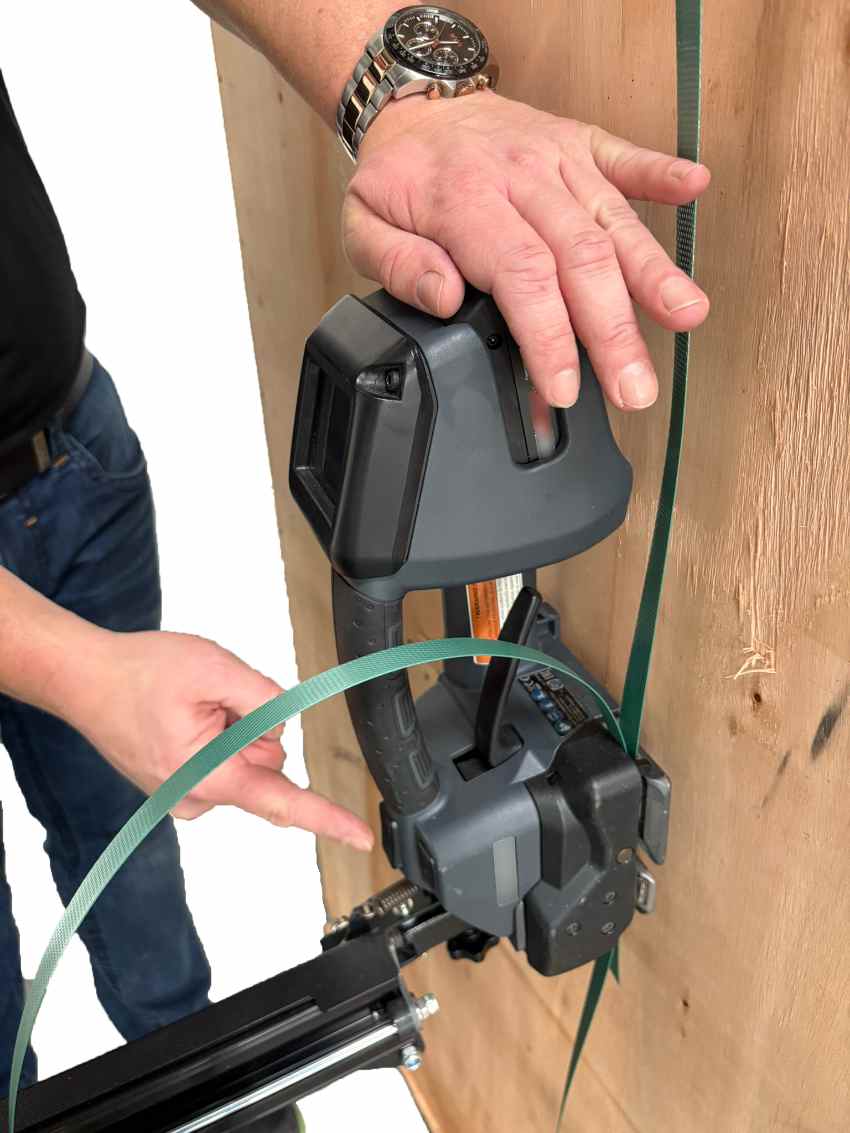 The tensioning and sealing of the plastic strap work automatically with our machine, which allows for consistent quality and repeatability, no matter if it is Monday morning or Friday night.
