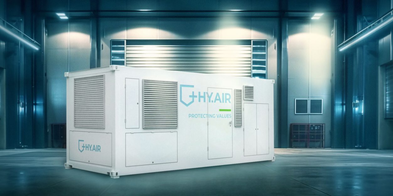 As the world’s only preventive fire protection system based on a fuel cell, the HY.AIR 80 uses the low-oxygen exhaust air produced during the energy conversion of hydrogen to reduce the oxygen content in storage rooms – thus not only creating a permanent protective atmosphere, but also generating green electricity...