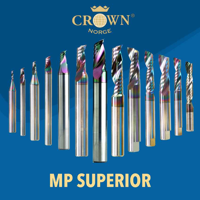 Crown Norge has the moto “Innovative cutting tools” which it lives up to on a regular basis. The SUPERIOR coating from Crown Norge was first introduced in 2018 to great success. This improved even further the processing capabilities of routing solid aluminium, without the need for coolant. This coating significantly increased tool life, cutting speed and cut finish. Over 7 years on and this tool still sets the benchmark for performance, tool life and cut quality in cutting aluminium dry, HPL, brass and ACM.