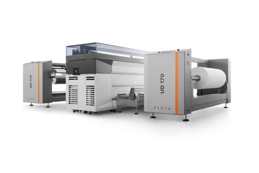 The second is an in-line system for unwinding and rewinding jumbo rolls in combination with the printer. This workflow automation enables uninterrupted production from printing to finishing. Both the UD 170 unwinder and RD 170 rewinder are unique on the market thanks to their automatic vertical alignment sensor, which ensures perfect edge alignment during unwinding and rewinding operations.