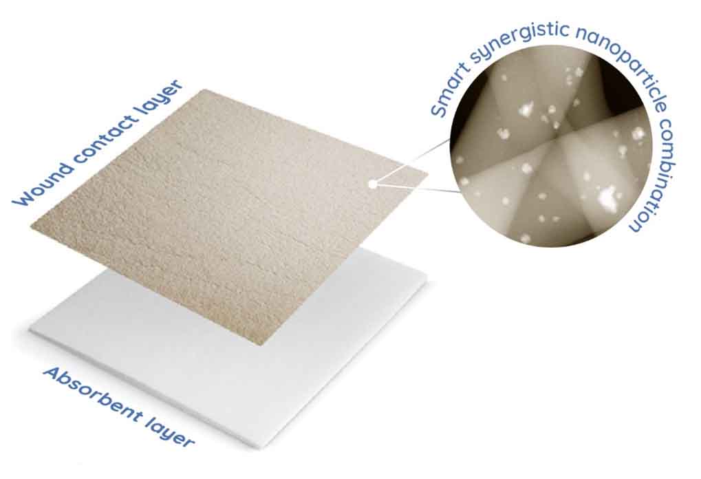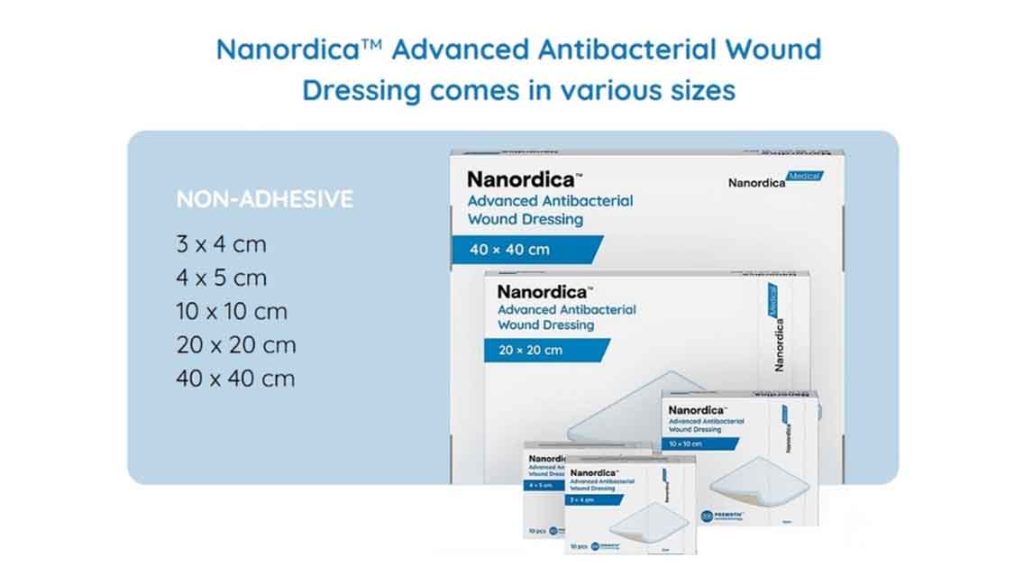 Figure 6. Nanordica Advanced Antibacterial Wound Dressing is a sterile single use wound dressing that is manufactured following environmentally friendly principles. It looks like a simple dressing but contains innovative nanotechnology.
