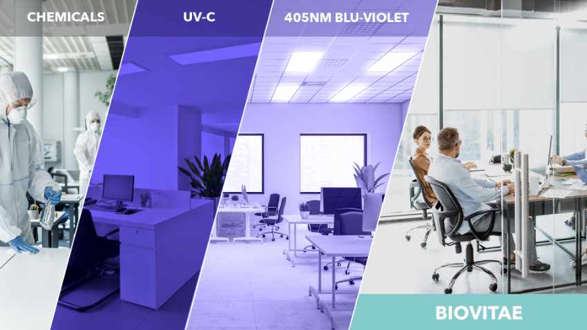 M.P & C.C: The most emblematic innovation is the multi-peak visible-light LED, capable of eliminating bacteria and viruses while emitting standard white light. This unique dual function makes Biovitae the only patented technology in the world that can continuously sanitize in the presence of people.